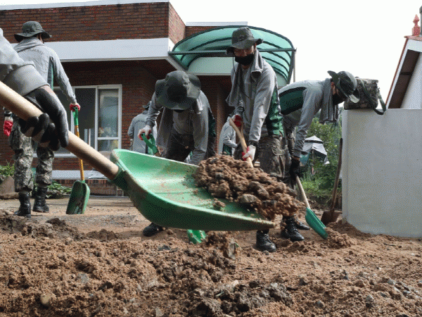 µ¿±¸Ã» Á÷¿øµé°ú À庴µéÀº ÁýÁßÈ£¿ì·Î ÇÇÇØ¸¦ ÀÔÀº ÁÖ¹ÎÀ» À§ÇØ Ä§¼öµÈ °¡¿Á°ú µµ·ÎÀÇ Åä»ç¸¦ Á¦°ÅÇϰí ÇÏõº¯ ºÎÀ¯¹°À» ó¸®ÇÏ´Â µî º¹±¸ ÀÛ¾÷¿¡ ±¸½½¶¡À» Èê·È´Ù.