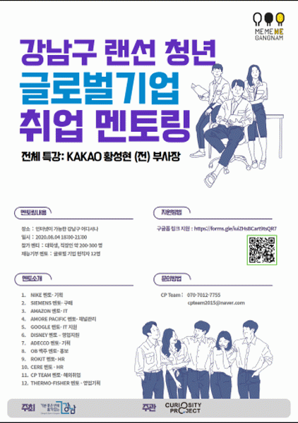 À̹ø Çà»ç´Â ±â¾÷¸àÅ丵 ºÀ»ç´Üü ¡®Å¥¸®¾Æ¼Æ¼ ÇÁ·ÎÁ§Æ®¡¯°ú °øµ¿°³ÃÖÇÏ´Â °ÍÀ¸·Î, ÀÎÅÍ³Ý »ç¿ëÀÌ °¡´ÉÇÑ °÷ÀÌ¸é ¾îµð¼³ª ¿Â¶óÀÎÀ» ÅëÇØ Ãë¾÷¸àÅ丵À» Á¦°ø¹ÞÀ» ¼ö ÀÖ´Ù. ¹«·á È»óÇÁ·Î±×·¥ ¡®ZOOM¡¯À» ÅëÇØ ´©±¸³ª Âü¿©ÇÒ ¼ö ÀÖÀ¸¸ç, Ȳ¼ºÇö īī¿À Àü ºÎ»çÀå°ú ±Û·Î¹ú±â¾÷ ÇöÁ÷ÀÚ 12¸íÀÌ Æ¯°À» ÅëÇØ Ãë¾÷¿¡ ÇÊ¿äÇÑ Á¤º¸¸¦ Á¦°øÇÑ´Ù.