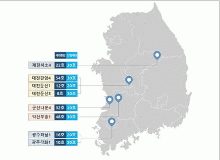 ¿ÃÇØ ¸®¸ðµ¨¸µÀ» ½Ç½ÃÇÏ´Â ¿µ±¸ÀÓ´ë ´ÜÁö´Â ±º»ê³ª¿î4, ÀÍ»êºÎ¼Û1, ±¤ÁÖÇϳ²1, ±¤ÁÖ°¢È1, ´ëÀüÆÇ¾Ï4, ´ëÀüµÐ»ê1, ´ëÀüµÐ»ê3, Á¦ÃµÇϼÒ4 ÃÑ 8°÷ 300È£À̸ç ÁÖÅóëÈĵµ, ¼ö¿ä¿©°Ç, ½Å¼ÓÁýÇà °¡´É¼º µîÀ» °í·ÁÇÏ¿© °áÁ¤µÇ¾ú´Ù. 8°÷ÀÇ ´ÜÁö´Â Áö³ ±Ý¿äÀÏ ´ëÀüµÐ»ê3À» ½ÃÀÛÀ¸·Î 8¿ù 5ÀϱîÁö ¸ðµÎ ù »ðÀ» ¶ß°Ô µÈ´Ù.