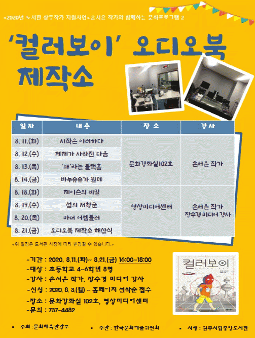 ¸ÕÀú µµ¼°ü¿¡¼ ¼Õ¼Àº ÀÛ°¡ÀÇ Áöµµ ¾Æ·¡ Ã¥ ³»¿ëÀ» ÀÍÈù ÈÄ Àå¼ö°æ ¹Ìµð¾î °»ç¿Í ÇÔ²² ¿øÁÖ¿µ»ó¹Ìµð¾î¼¾ÅÍ¿¡¼ ¿Àµð¿ÀºÏÀ» ³ìÀ½ÇÏ´Â °úÁ¤À¸·Î ÃÑ 8ȸ¿¡ °ÉÃÄ ÁøÇàµÈ´Ù.