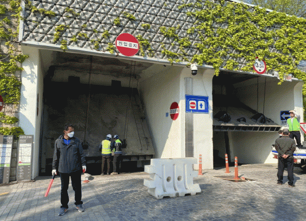 À°°©¹®Àº ÇѰ¿¡ ÀÚµ¿Â÷³ª »ç¶÷ÀÌ ÅëÇà ÇÒ ¼ö ÀÖ°Ô ¸¸µé¾î ³õÀº ³ªµé¸ñ¿¡ ¼³Ä¡µÇ¾î ÀÖ´Â ¼ö¹®À¸·Î, ÇѰ ¼öÀ§°¡ »ó½ÂÇßÀ» ¶§ ³ªµé¸ñÀ» ÅëÇØ Á¦¹æ ¾ÈÂÊÀ¸·Î ÇѰ¹°ÀÌ µé¾î¿ÀÁö ¸øÇϵµ·Ï ¼³Ä¡µÈ ¼öÇØ ¿¹¹æ½Ã¼³ÀÌ´Ù.