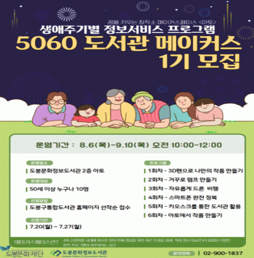 »ý¾ÖÁֱ⺰ Á¤º¸¼ºñ½º ÇÁ·Î±×·¥ ¡®5060 µµ¼°ü ¸Þ¾îÄ¿½º¡¯´Â SWâÀÇÀ¶ÇÕ¿¬±¸¼ÒÀÇ Àü¹® °»ç 2¸í°ú ÇÔ²² ½Ç½À À§ÁÖÀÇ Âü¿© ÇÁ·Î±×·¥À¸·Î ÁøÇàµÈ´Ù. ÃÑ 12ȸÂ÷, ±â¼ö´ç 6ȸÂ÷ ÇÁ·Î±×·¥ÀÌ ¿î¿µµÈ´Ù.