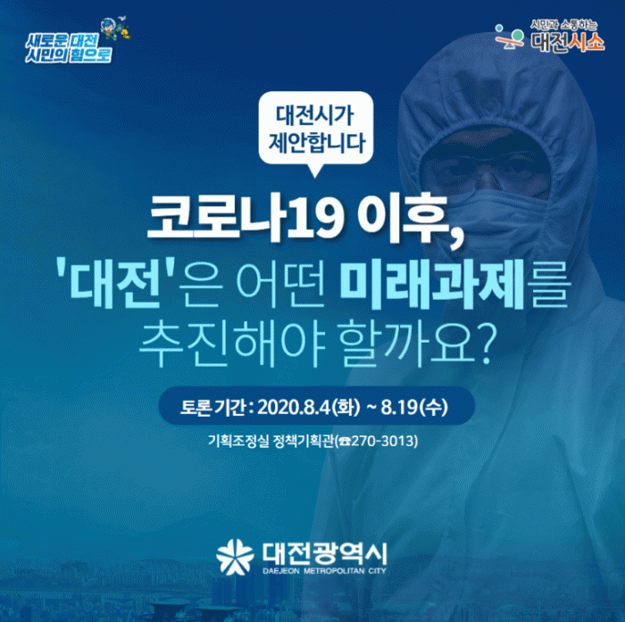 ´ëÀü½Ã´Â ½Ã¹ÎÂü¿© Á¤Ã¥Á¦¾È Ç÷§Æû ¡®´ëÀü½Ã¼Ò_´ëÀü½Ã°¡ Á¦¾ÈÇÕ´Ï´Ù¡¯¸¦ ÅëÇØ 8¿ù 19ÀϱîÁö ÇØ´ç ÁÖÁ¦¿¡ ´ëÇÑ ½Ã¹ÎÀÇ ÀǰßÀ» ¼ö·ÅÇÑ´Ù°í 5ÀÏ ¹àÇû´Ù.
