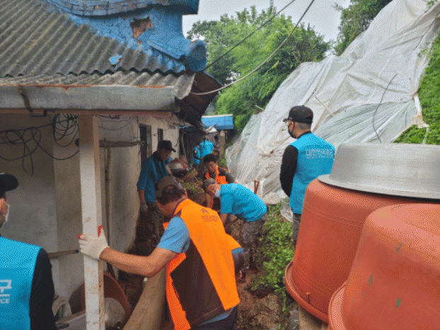 À̳¯ º¹±¸ ÀÛ¾÷¿¡´Â °ø¹«¿ø°ú ¿ø°îÀÇ¿ë¼Ò¹æ´ë, Áö¿ªÁÖ¹Î, ±º À庴 µî 30¿©¸íÀÌ Âü¿©ÇØ ¹«³ÊÁø Åä»ç¸¦ Á¦°ÅÇÏ°í ¸ð·¡ÁָӴϸ¦ ÀÌ¿ëÇØ ¹«³ÊÁø °æ»ç¸éÀ» º¹±¸ÇÏ´Â µî ¸ðµÎ°¡ ÇѸ¶À½À¸·Î ÇÇÇØ º¹±¸¸¦ À§ÇØ ±¸½½¶¡À» Èê·È´Ù.