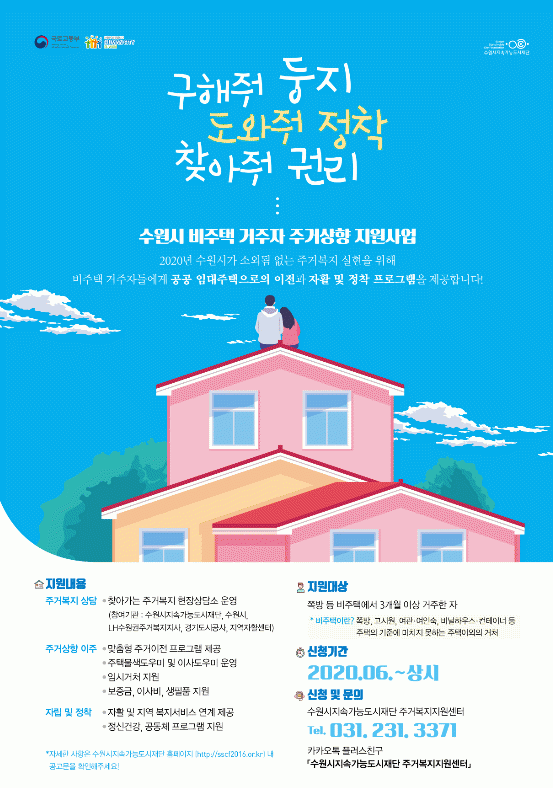 ¡®¼ö¿ø½Ã ºñÁÖÅà °ÅÁÖÀÚ ÁÖ°Å »óÇâ Áö¿ø»ç¾÷¡¯Àº ¼ö¿ø½Ã°¡ ±¹Åä±³ÅëºÎ ¡®ºñÁÖÅà °ÅÁÖÀÚ ÁÖ°Å »óÇâ Áö¿ø °ø¸ð»ç¾÷¡¯ ¼±µµ ÁöÀÚü·Î ¼±Á¤µÇ¸é¼ ÃßÁøÇÏ´Â »ç¾÷À¸·Î ºñÁÖÅà °ÅÁÖÀÚ°¡ °ø°øÀÓ´ëÁÖÅÃÀ¸·Î ÁÖ°ÅÁö¸¦ ¿Å±æ ¼ö ÀÖµµ·Ï ÅëÇÕÀûÀ¸·Î Áö¿øÇÏ´Â °ÍÀÌ´Ù. ºñÁÖÅà °ÅÁÖÀÚÀÇ ÀÚ¸³°ú Á¤Âøµµ Áö¿øÇÑ´Ù.