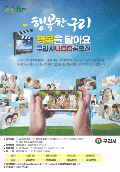 ÇÑÆí, ¡®±¸¸® ½Ã¹ÎÇູ UCC °ø¸ðÀü¡¯¿¡ ´ëÇÑ ÀÚ¼¼ÇÑ ³»¿ë µîÀº ±¸¸®½Ãû ȨÆäÀÌÁö(www.guri.go.kr)¸¦ ¹æ¹®Çϰųª ±¸¸®½Ãû ¼ÒÅë°øº¸´ã´ç°ü(031-550-2545)·Î ¹®ÀÇÇÏ¸é µÈ´Ù.