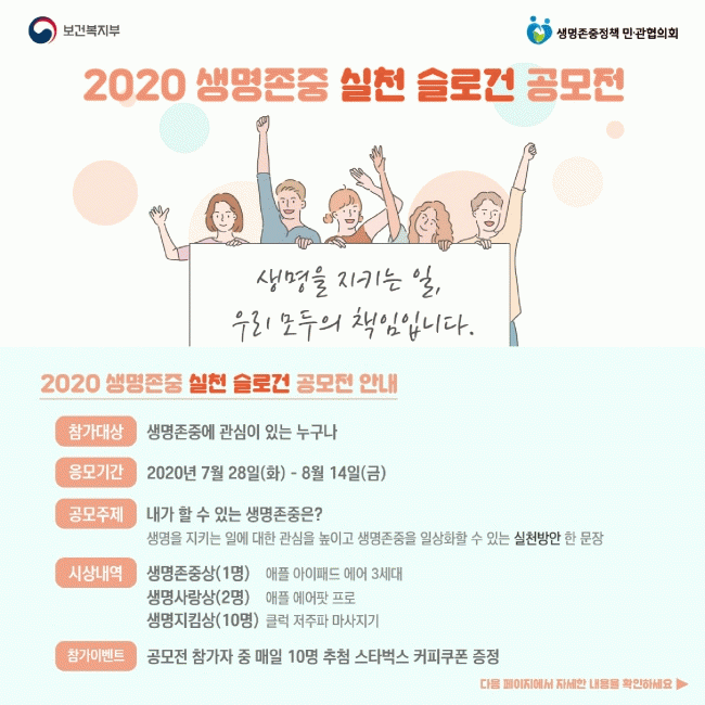 À̹ø °ø¸ðÀüÀº 2020³â 9¿ù 10ÀÏ Àڻ쿹¹æÀÇ ³¯À» ¸ÂÀÌÇÏ¿©, »ý¸íÀ» ÁöŰ´Â ÀÏ¿¡ ´ëÇÑ °ü½ÉÀ» ³ôÀÌ°í »ý¸íÁ¸Áß ½ÇõÀ» ÀÏ»óÈÇϱâ À§ÇÏ¿© ÁøÇà ÁßÀ̸ç, °ø¸ð±â°£Àº ÀÌ´Þ 14ÀϱîÁöÀÌ´Ù.