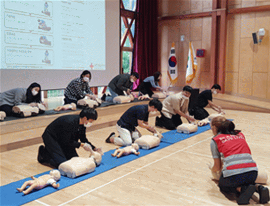 ±¸È£Àü¹®±â°üÀÎ ´ëÇÑÀû½ÊÀÚ»ç °¿øÁö»ç¿Í °øµ¿À¸·Î ÁøÇàÇÑ À̹ø ±³À°¿¡¼´Â ÀÀ±Þ»óȲ ½Ã Çൿ¿ä·É, ½ÉÆó¼Ò»ý¼ú, ÀÚµ¿½ÉÀåÃæ°Ý±â(AED) »ç¿ë ¹æ¹ý µî ÃÑ 12½Ã°£ÀÇ ½ÇÁ¦ »óȲÀ» °¡Á¤ÇÑ ½Ç½ÀÀÌ ÁøÇàµÆ´Ù.