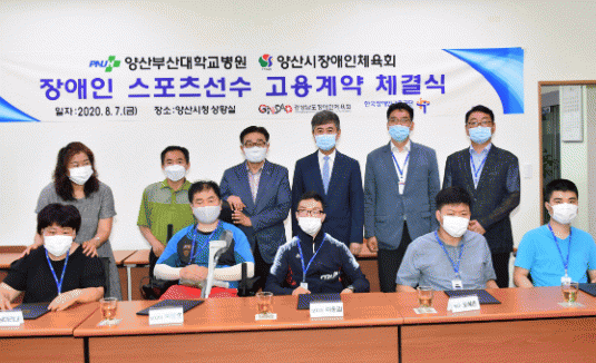 ¾ç»êºÎ»ê´ëÇб³º´¿øÀº 7ÀÏ ¾ç»ê½ÃÀå¾ÖÀÎüÀ°È¸¿Í Çѱ¹Àå¾ÖÀΰí¿ë°ø´Ü ¿ï»êÁö»ç·ÎºÎÅÍ Ãßõ¹ÞÀº Àå¾ÖÀÎ ½ºÆ÷Ã÷¼±¼ö 5¸í°ú °í¿ë °è¾à ü°á½ÄÀ» °¡Á³´Ù. À̳¯ °í¿ë°è¾à ü°á½Ä¿¡´Â ¼±¼ö 5¸íÀ» ºñ·ÔÇØ ±èÀ챂 ¾ç»ê½ÃÀå(¾ç»ê½ÃÀå¾ÖÀÎüÀ°È¸Àå), ±è´ë¼º ¾ç»êºÎ»ê´ëÇб³º´¿øÀåÀÌ ¼±¼öµéÀÇ ³»ÀÏÀ» ÀÀ¿øÇϰíÀÚ Âü¼®Çß´Ù.