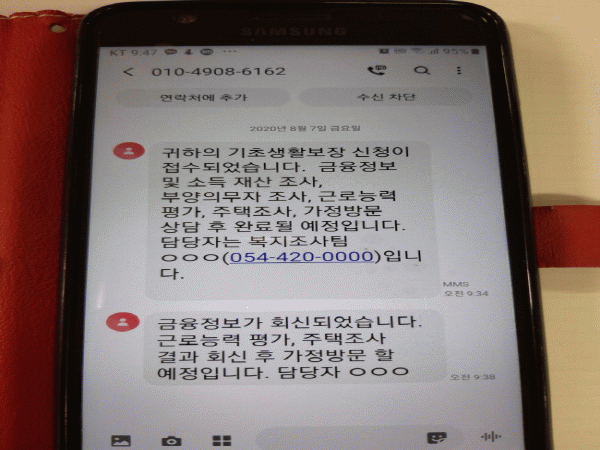 ¼ºñ½º ´ë»óÀº ±âÃÊ»ýȰº¸Àå »ý°è, ÀÇ·á, Áְű޿© ½ÅûÀڷμ, ÁÖ¹ÎÀÌ À¾¸éµ¿¿¡ ½ÅûÇÑ »çȸº¸Àå±Þ¿©¿¡ ´ëÇÏ¿© ÅëÇÕÁ¶»ç¸¦ ÁøÇàÇÏ´Â º¹ÁöÁ¶»çÆÀ¿¡¼ ½Åû ¼·ùÀÇ Á¢¼ö¿©ºÎ, ÅëÇÕÁ¶»ç ÁøÇà°úÁ¤, ÇâÈÄ ÀÏÁ¤, Á¶»ç´ã´çÀÚ ¹× ¿¬¶ôó µîÀ» ÇØ´ç ½ÅûÀο¡°Ô ¹®ÀÚ¸Þ½ÃÁö·Î ¹ß¼ÛÇÑ´Ù.