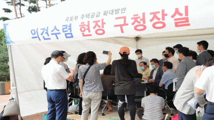 ÇÑÆí, ÁֹΠÀǰ߼ö·ÅÀ» À§ÇØ ¡®ÇöÀå ±¸Ã»Àå½Ç¡¯ ¿î¿µÀ» ½ÃÀÛÇÑ Ã¹ ³¯, »ó¾Ï Áö¿ª ÁֹΠ¾à ¹é¿© ¸íÀÌ ¹æ¹®ÇØ Á¤ºÎÀÇ À̹ø ÁÖÅðø±Þ °èȹ¿¡ ´ëÇØ ¹Ý´ëÇϸç ÁֹεéÀÇ ÀǰßÀ» ±¸Ã»Àå¿¡°Ô Àü´ÞÇÏ°í ¼ÒÅëÇÏ´Â ½Ã°£À» °¡Á³´Ù.