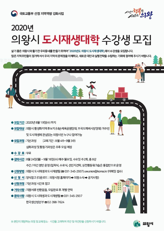 ¼ö°½ÅûÀº ÀǿսÃû ȨÆäÀÌÁö °øÁö»çÇ׿¡ °Ô½ÃµÈ ½Åû¼¸¦ ³»·Á¹Þ¾Æ ÀÛ¼º ÈÄ ½Ãû µµ½ÃÀç»ý°ú·Î ¹æ¹®ÇÏ¿© Á¦ÃâÇϰųª À̸ÞÀÏ·Î Á¢¼öÇÏ¸é µÇ¸ç, °ÀÇ´Â ¿À´Â 24ÀÏ °³°½ÄÀ» ½ÃÀÛÀ¸·Î 9¿ù 16ÀϱîÁö ¸ÅÁÖ ¿ù¡¤¼ö¿äÀÏ ÁÖ 2ȸ¾¿ ÁÖ°£¹ÝÀº 14½ÃºÎÅÍ 16½Ã±îÁö, ¾ß°£¹ÝÀº 19½ÃºÎÅÍ 21½Ã±îÁö ÀǿսÃû º°°ü ȸÀǽǿ¡¼ °ÀǸ¦ ÁøÇàÇÒ ¿¹Á¤ÀÌ´Ù.