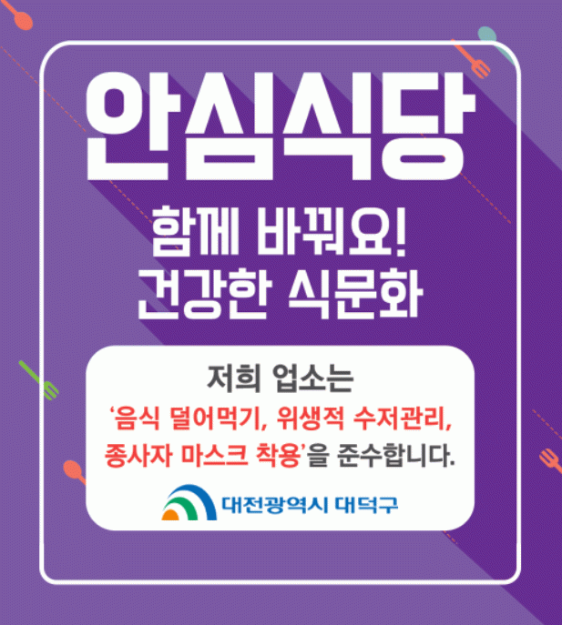 ´ë»óÀº ¸ð¹üÀ½½ÄÁ¡ ¹× À§»ýµî±Þ ÁöÁ¤¾÷¼Ò, ÀϹÝÀ½½ÄÁ¡ µîÀ¸·Î À½½Ä ´ú¾î¸Ô±â °¡´ÉÇÑ Áý°Ô Á¦°ø, À§»ýÀûÀÎ ¼öÀú°ü¸®, Á¾»çÀÚ ¸¶½ºÅ© Âø¿ë µî 3°¡Áö ÁöÁ¤¿ä°ÇÀ» ÃæÁ·ÇØ¾ß ÇÑ´Ù. ÁöÁ¤µÈ ¾÷¼Ò¿¡´Â ¾È½É½Ä´ç ½ºÆ¼Ä¿¿Í À§»ý¿ëǰ µîÀÌ Áö¿øµÈ´Ù.±¸´Â ¿ÃÇØ ¾È½É½Ä´ç 80°³¸¦ ¿ì¼± ÁöÁ¤ÇÏ°í ³»³â¿¡´Â È®´ëÇÒ °èȹÀÌ´Ù.
