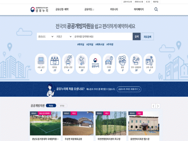 ¡®°øÀ¯´©¸®¡¯´Â Áö³ 3¿ùºÎÅÍ Á¦°øÇÏ´Â ¼ºñ½º·Î Àü±¹ ÁöÀÚü¿Í °ø°ø±â°üÀÇ ½Ã¼³°ú ¹°Ç° µî ±¹¹ÎÀÌ »ç¿ëÇÒ ¼ö ÀÖ´Â °ø°ø°³¹æÀÚ¿øÀ» °Ë»öÇϰí À̿뿹¾à°ú °áÁ¦±îÁö ÇÒ ¼ö ÀÖ´Â ¿Â¶óÀΰø°øÀÚ¿ø °øÀ¯Æ÷ÅÐÀÌ´Ù.