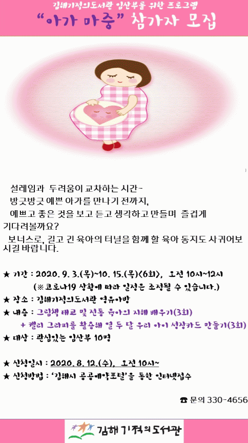 ¡°¾Æ°¡¸¶Áß¡±Àº ÇÑâ ÁÁÀº °ÍÀ» ¹Þ¾ÆµéÀÌ·Á´Â °¨°¢ÀÌ ¿·Á ÀÖ´Â ½Ã±âÀÌÀÚ, ¿¹»Û ¾Æ±â¸¦ ¸¸³ª±â Àü±îÁö ¼³·¹ÀÓ°ú µÎ·Á¿òÀÌ ±³Â÷ÇÏ´Â ÀӽűⰣ µ¿¾È ¿¹ºñ ¾ö¸¶µéÀÌ µµ¼°üÀ» ±Ù°Å·Î ÀӽŰú Ãâ»ê, À°¾Æ¿¡ °ü·ÃµÈ °æÇè°ú ÁöÇý¸¦ ³ª´©¸ç À°¾Æ µ¿Áö¸¦ »ç±Ð ¼ö ÀÖµµ·Ï µ½°íÀÚ ±âȹµÇ¾ú´Ù.
