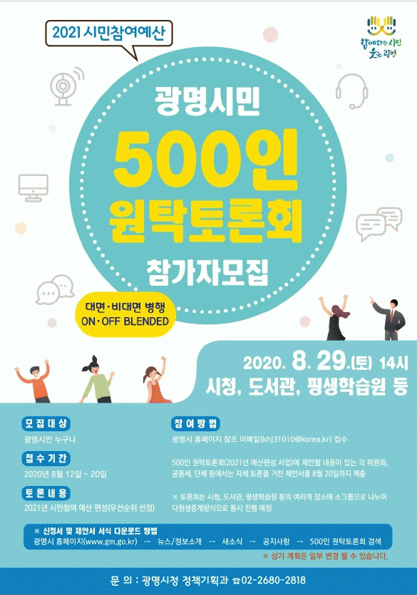¿ÃÇØ´Â Äڷγª19¸¦ ¿¹¹æÇϰíÀÚ ½Ãû.µµ¼°ü.Æò»ýÇнÀ¿ø µî¿¡ ±×·ì ´ç 50¿©¸íÀÇ ½Ã¹ÎÀÌ ¸ð¿© Åä·ÐÇϸç Áß°è½Ã½ºÅÛÀ¸·Î ´Ù¸¥ ±×·ì°ú ½Ç½Ã°£ ¼ÒÅëÇÏ´Â ¹æ½ÄÀ¸·Î ÀÌ·ç¾îÁø´Ù. °¢ ±×·ì¿¡´Â ÆÛ½Ç¸®Å×ÀÌÅÍ(ȸÀÇ ÁøÇàÀÚ)°¡ ¹èÄ¡µÅ Åä·ÐÀ» À̲ô´Â ¹æ½ÄÀ¸·Î ÁøÇàµÈ´Ù. ±¤¸í½Ã´Â »çÀü ÀÇÁ¦ ¹ß±¼À» À§ÇØ ½Ã ¼Ò¼Ó À§¿øÈ¸³ª °øµ¿Ã¼, ´Üü µîÀÇ ±×·ìº° »çÀü Åä·ÐÀ» °ÅÄ£ Á¦¾È¼¸¦ Á¢¼öÇÒ ¿¹Á¤ÀÌ´Ù.