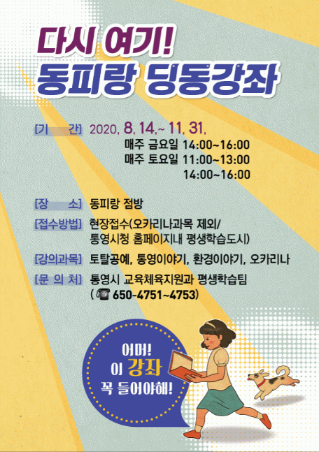 °Á´ ÅäÅ»°ø¿¹, Å뿵ÇаÁÂ, µ¿ÇǶûÀ» ±×¸®ÀÚ, µ¿ÇǶûÀ» ¿¬ÁÖÇÏ´Ù(¿ÀÄ«¸®³ª), ȯ°æÀ̾߱⡱µî 5°³ ÇÁ·Î±×·¥À¸·Î ÁøÇàµÇ¸ç Å뿵½Ã¹Î»Ó¸¸ ¾Æ´Ï¶ó µ¿ÇǶûÀ» ãÀº °ü±¤°´µéµµ Âü¿©°¡´ÉÇÏ´Ù.