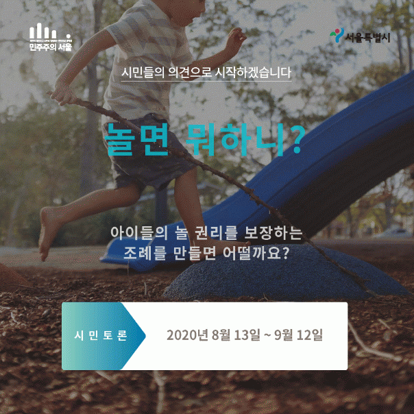 ¾Æµ¿µéÀÇ ¡®³î ±Ç¸®¡¯¿¡ ´ëÇÑ Á¦¾ÈÀº ¡¸¹ÎÁÖÁÖÀÇ ¼¿ï¡¹¿¡ ÇÑ ÃʵîÇлýÀÌ ¡°Ä£±¸µé°ú ¸¶À½²¯ ¶Ù³î°í Æí¾ÈÇÏ°Ô ½¯ ¼ö ÀÖ´Â ¼¿ï½Ã¸¦ ¸¸µéÀÚ¡±°í Á¦¾ÈÀ» ¿Ã¸®¸é¼ ½ÃÀ۵Ǿú´Ù. ¾î¸°À̵éÀÇ ³î ±Ç¸®¸¦ º¸ÀåÇϱâ À§ÇØ ¼¿ï½Ã¿¡ ³îÀ̰ü·Ã ºÎ¼¸¦ ¸¸µé°í, ³î ±Ç¸® ½ÇÅÂÁ¶»ç¸¦ ÇØ º¸ÀÚ´Â Àǰߵµ ÇÔ²² ³»³õ¾Ò´Ù. Á¦¾ÈÀÌ ¿Ã¶ó¿Â Áö ÇÑ ´Þ ¸¸¿¡ 297¸íÀÇ ½Ã¹ÎµéÀÌ °ø°¨À» Ç¥Çß´Ù.