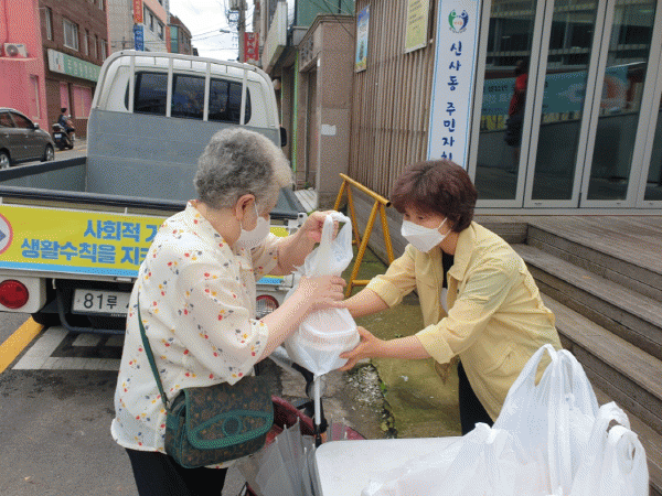 14ÀÏ ½Å¸²µ¿Àº Áö¿ª»çȸº¸ÀåÇùÀÇü¿Í Áö¿ª ½Ä´çÀÇ ÈÄ¿øÀ» ¹Þ¾Æ »ï°èÅÁ 100ÀκÐÀ» Æ÷ÀåÇØ Á÷´É´Üü ȸ¿ø°ú µ¿ Á÷¿øÀÌ 65¼¼ ÀÌ»ó Ãë¾à°èÃþ ¾î¸£½Å °¡Á¤¿¡ Á÷Á¢ ¹è´ÞÇÑ´Ù. ¼¸²µ¿Áֹμ¾ÅÍ¿¡¼µµ µ¶°Å³ëÀÎ ¾î¸£½ÅÀÌ ¹«´õ¿î ¿©¸§À» °Ç°È÷ º¸³¾ ¼ö ÀÖµµ·Ï »õ¸¶À»ºÎ³àȸ¿øÀÌ ¸ð¿© Á¤¼º½º·¹ ²úÀÎ »ï°èÅÁ 20¸¶¸®¸¦ Àü´ÞÇÏ´Â ³ª´®Çà»ç¸¦ 14ÀÏ ÁøÇàÇÑ´Ù.
