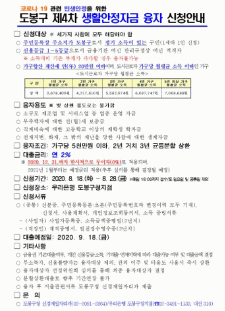 ¡®Á¦4Â÷ »ýȰ¾ÈÁ¤Àڱݡ¯ ¹«ÀÌÀÚ À¶ÀÚ Áö¿ø ½Åû±â°£Àº 8¿ù 18ÀϺÎÅÍ 8¿ù 28ÀϱîÁöÀÌ´Ù. ¿ì¸®ÀºÇà µµºÀ±¸Ã»ÁöÁ¡¿¡ ½ÅûÇÏ¸é µÈ´Ù.
