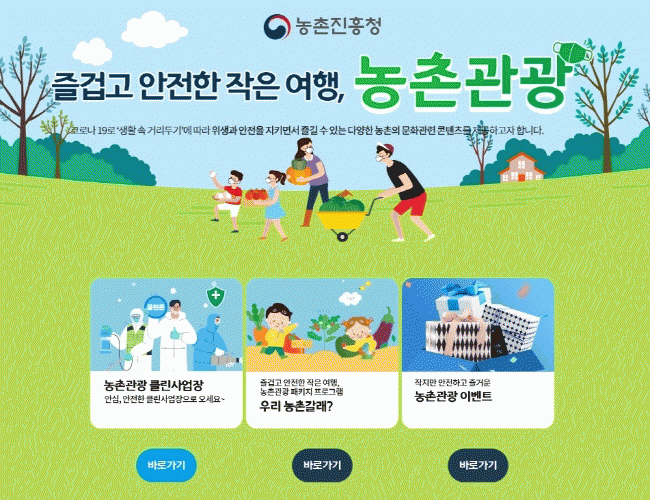 ÀÌ¿Í °ü·Ã ³óÃÌÁøÈïûÀº °ø½Ä »çȸ°ü°è¸Á(SNS)À» ÅëÇØ Àü ±¹¹Î Âü¿© ³óÃÌ¿©Çà ÀÌ¿ëÈıâ À̺¥Æ®¸¦ ¸¶·ÃÇϰí, ³óÃ̰ü±¤ Ŭ¸°»ç¾÷ÀåÀ» ÀÌ¿ëÇÒ ¼ö ÀÖ´Â ¿Â¶óÀÎ »óǰ±ÇÀ» °³¹ßÇØ ³óÃÌ¿©Çà Ȱ¼ºÈ¸¦ µµ¸ðÇϰí ÀÖ´Ù.