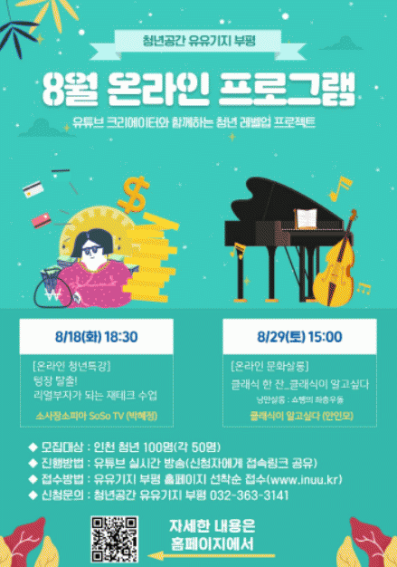 °¢ ÇÁ·Î±×·¥Àº ¡®À¯À¯±âÁö ºÎÆò¡¯ ȨÆäÀÌÁö(www.inuu.kr)¿¡¼ ¼±Âø¼øÀ¸·Î Á¢¼ö °¡´ÉÇϸç, ÀÎõ û³âÀÌ¸é ´©±¸³ª ¹«·á·Î ½ÅûÇÒ ¼ö ÀÖ´Ù. Á¢¼ö ÀÏÁ¤ µî ÀÚ¼¼ÇÑ ³»¿ëÀº ¡®À¯À¯±âÁö ºÎÆò¡¯ ȨÆäÀÌÁö¸¦ Âü°íÇϰųª ÀüÈ(¢Ï363-3141)·Î ¹®ÀÇÇÏ¸é µÈ´Ù.