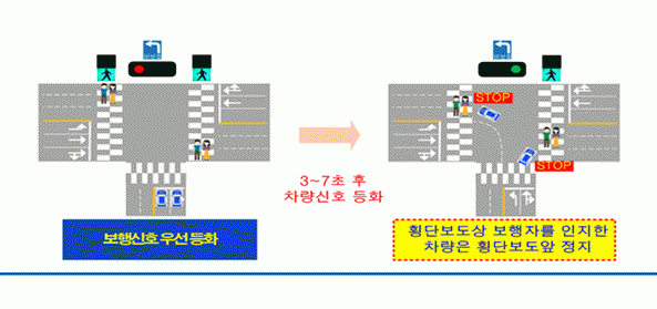 º¸µµ ½ÅÈ£¸¦ ¸ÕÀú ÀÛµ¿(3~7ÃÊ)½ÃÄÑ ÁÜÀ¸·Î½á ¿îÀüÀÚ°¡ º¸ÇàÀÚ¸¦ ¹Ì¸® ÀνÄÇØ Ⱦ´Üº¸µµ ³» »ç°í¸¦ ¿¹¹æÇÏ´Â ½Å°³³ä ±³Åë½ÅÈ£ ü°èÀÌ´Ù. ¹Ì±¹ ´º¿å½Ã¿¡¼ óÀ½ ½ÃÀÛÇÏ¿© ÇöÀç ¼öµµ±Ç ÀϺΠµµ½Ã¿¡¼ ¿î¿µÇϰí ÀÖÀ¸¸ç, ±³Åë»ç°íÀ² °¨¼Ò¿¡ »ó´çÇÑ È¿°ú°¡ ÀÖ´Â °ÍÀ¸·Î Á¶»çµÇ¾úÀ¸¸ç, â¿ø½Ã¿¡¼´Â Å« ºñ¿ëÀ» µéÀÌÁö ¾Ê°í ±âÁ¸ ½ÅÈ£½Ã°£ÀÇ ÀçÁ¶Á¤¸¸À¸·Îµµ ±³Åë¾ÈÀü¿¡ ȹ±âÀûÀÎ µµ¿òÀ» ÁÙ ¼ö ÀÖÀ» °ÍÀ¸·Î ±â´ëÇϰí ÀÖ´Ù.