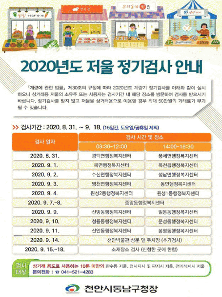 À̹ø Á¤±â°Ë»ç´Â ¿À´Â 31ÀÏ ±¤´ö¸é ÇàÁ¤º¹Áö¼¾Å͸¦ ½ÃÀÛÀ¸·Î µ¿³²±¸ 17°³ À¾¸éµ¿ ÇàÁ¤º¹Áö¼¾Å͸¦ ¼øÈ¸ÇÏ¸ç ½Ç½ÃµÈ´Ù. °Ë»çÀÏÁ¤ ¹× ±âŸ¹®ÀÇ´Â µ¿³²±¸ »ê¾÷±³Åë°ú(¢Ï041-521-4283)·Î ÇÏ¸é µÈ´Ù.