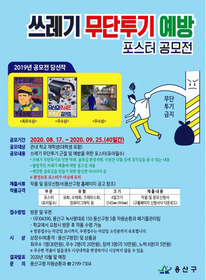 °ø¸ð ÁÖÁ¦´Â ¾²·¹±â ¹«´ÜÅõ±â ±ÙÀý°ú ¿¹¹æÀ» À§ÇÑ Æ÷½ºÅÍ´Ù. ¾²·¹±â ¹«´ÜÅõ±â·Î ÀÎÇÑ ¾ÇÃë, °ñ¸ñ±æ ¹Ì°üÀúÇØ, ÀÌ¿ô °£ ´ÙÅù µî ¹®Á¦Á¡À» Ç¥ÇöÇØ Áֹε鿡°Ô °æ°¢½ÉÀ» Áְųª ±ú²ýÇÑ µ¿³×¸¦ ¸¸µé±â À§ÇÑ Âü½ÅÇÑ ¾ÆÀ̵ð¾î¸¦ ¼Ò°³ÇÏ¸é µÈ´Ù.