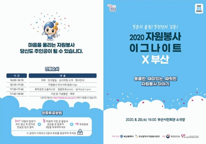 ¿ÃÇØ´Â Äڷγª19·Î ÀÎÇØ ¹«°üÁß ºñ´ë¸é Çà»ç·Î °³ÃÖÇϰí, ÇöÀå ½ÇȲÀº¹Ù´ÙTV¸¦ ÅëÇØ Áß°èµÇ¸ç, »çÀü¿¡ ¸ðÁýµÈ 400¿©¸íÀÇ Ã»Á߯ò°¡´ÜÀÌ ¹ßÇ¥ Á¾·á ÈÄ ¼±°üÀ§ÀÇ K-Voting(¿Â¶óÀÎÅõÇ¥½Ã½ºÅÛ)¿¡ Á¢¼ÓÇÏ¿© °¡Àå °¨µ¿ÀûÀÎ »ç·Ê¿¡ ÅõÇ¥ÇÑ´Ù. ´çÀÏ 400¿© ¸íÀÇ Ã»Á߯ò°¡´Ü°ú Àü¹®°¡ ½É»ç´ÜÀÇ Á¡¼ö¸¦ ÇÕ»êÇÑ ÃÑ Á¡¼ö·Î Æò°¡ÇÒ ¿¹Á¤À̸ç, °á°ú¿¡ µû¶ó ÇàÁ¤¾ÈÀüºÎÀå°ü»ó(1), Çѱ¹Áß¾Ó¡¤ºÎ»ê½ÃÀÚ¿øºÀ»ç¼¾ÅÍÀå»ó(9)À» ½Ã»óÇÑ´Ù.