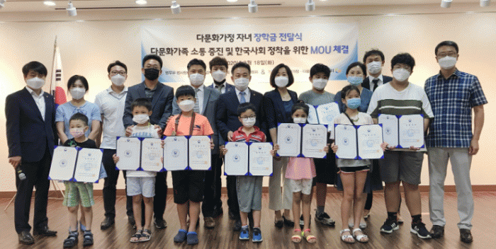 ¶ÇÇÑ, Áß±¹, º£Æ®³², įº¸µð¾Æ, Çʸ®ÇÉ, ³×ÆÈ 5°³±¹ 8¸íÀÇ ´Ù¹®È°¡Á¤ Àڳ࿡°Ô ¿ª·®°È ¹× ÇнÀÁö¿øÀ» À§ÇÑ ÀåÇбÝÀ» 20¸¸¿ø ¾¿ Àü´ÞÇß´Ù.
