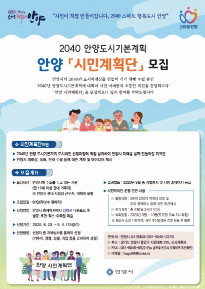 ¾È¾ç½Ã°¡¡®2040³â ¾È¾çµµ½Ã±âº»°èȹ¡¯¼ö¸³¿¡ Âü¿©ÇÒ¡¸¾È¾ç½Ã¹Î°èȹ´Ü¡¹60¸íÀ» °ø°³ ¸ðÁýÇÑ´Ù.
