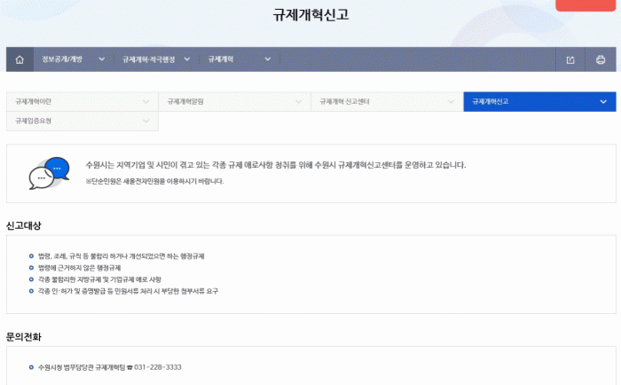 ±ÔÁ¦°³Çõ½Å°í¡¤±ÔÁ¦ÀÔÁõ¿äûÀº ¼ö¿ø½Ã ȨÆäÀÌÁö ¡®Á¤º¸°ø°³/°³¹æ¡¯¡æ¡®±ÔÁ¦°³Çõ¡¤Àû±ØÇàÁ¤¡¯¡æ¡®±ÔÁ¦°³Çõ¡¯ °Ô½ÃÆÇ¿¡¼ ½Å°í¡¤½ÅûÇÒ ¼ö ÀÖ´Ù.