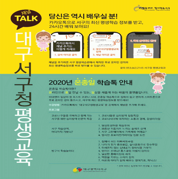 ¿ÃÇØ óÀ½À¸·Î ½ÃÀ۵Ǵ ¿Â¶óÀΰÁ Á¦°ø »ç¾÷Àº¡®¿ÂÁ¾ÀÏ ÇнÀÅ塯À̶ó´Â ¸íĪÀ¸·Î ¿î¿µµÇ¸ç, ÀÌ¿ë¹æ¹ýÀº īī¿ÀÅå »ó´Ü °Ë»öâ¿¡¼ ¡®´ë±¸¼±¸Ã»Æò»ý±³À°¡¯À» °Ë»öÇÑ ÈÄ Ã¤³ÎÀ» Ãß°¡ÇÏ¸é µÈ´Ù.
