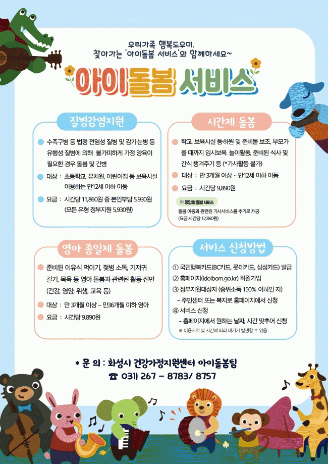 ÀÌ ¿Ü¿¡µµ ¸¸ 3°³¿ù¿¡¼ ¸¸ 12¼¼ ÀÌÇÏ ¾Æµ¿ÀÌ ¼öÁ·±¸³ª ¼öµÎ, ±¸³»¿° µî ¹ýÁ¤ Àü¿°¼º Áúº´À̳ª °¨±â, ´«º´ µîÀ¸·Î º¸À°½Ã¼³¿¡ °¡Áö ¸øÇÒ °æ¿ì ÀÌ¿ëÇÒ ¼ö ÀÖ´Â Áúº´°¨¿°¾Æµ¿ Ưº°Áö¿ø ¼ºñ½ºµµ ÁغñµÆ´Ù.
