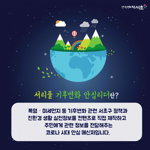 9¿ù 1ÀϺÎÅÍ ½ÃÀ۵Ǵ ¡¸¼¸®Ç® ±âÈĺ¯È ¾È½É¸®´õ¡¹ ¸ðÁýÀº ÃÑ 50¸íÀ» ¸ñÇ¥·Î Æò¼Ò¿¡ ȯ°æºÐ¾ß¿¡ °ü½ÉÀÌ ¸¹°í ÀÎÅÍ³Ý ¹× SNS Ȱ¿ëÀÌ ´É¼÷ÇÑ °ü³» 3040¼¼´ë ÁÖ¹ÎÀº ´©±¸³ª ½ÅûÀÌ °¡´ÉÇÏ´Ù. °¢ µ¿ Áֹμ¾ÅÍ ¹× ¼Ãʱ¸Ã» Ǫ¸¥È¯°æ°ú ±âÈÄȯ°æÁ¤Ã¥ÆÀÀ¸·Î À¯¼±(¢Ï02-2155-6467) ¶Ç´Â ¸ÞÀÏ(cesser@seocho.go.kr)·Î ½ÅûÇÏ¸é µÈ´Ù. ÀÌ´Â ±âÁ¸ 2015³â¿¡ ±¸¼ºµÇ¾ú´ø Ǫ¸¥¼ÃÊȯ°æ½Çõ´ÜÀÇ È®´ë·Î µ¿º°·Î 2~3¸í¾¿ Ȱµ¿ÇÏ´ø ȯ°æ¸®´õ¿¡ SNS Ȱµ¿¿¡ ´É¼÷ÇÑ ÁÖ¹ÎÀ» Ãß°¡·Î ¼±¹ßÇÏ¿© Äڷγª19 ȯ°æ¿¡ °É¸Â´Â ¾ðÅÃÆ® ¹æ½ÄÀÇ È°µ¿À» ÃßÁøÇÏ·Á´Â ¸ñÀûÀÌ´Ù.