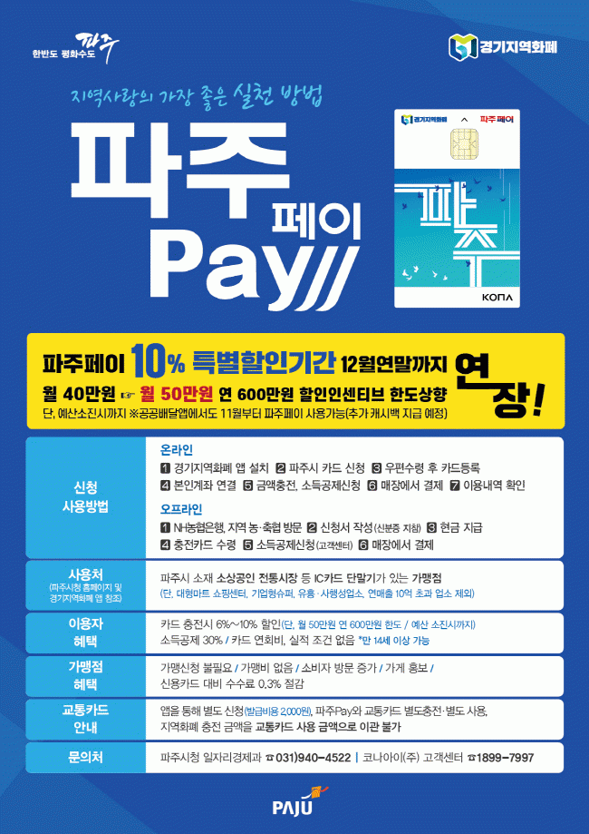 ÀÌ´Â Ãß¼®ÀÌ ´Ù°¡°í ÀÖ°í 10¿ù ¸», °ø°ø¹è´Þ¾Û ½Ã¹ü¼ºñ½º°¡ °³½ÃµÊ¿¡ µû¶ó Áö¿ªÈÆó ÃæÀü Çѵµ¸¦ »óÇâÇØ Áö¿ª °ñ¸ñ»ó±Ç, ÀüÅë½ÃÀå¿¡¼ÀÇ ¼Òºñ¸¦ È®´ëÇϱâ À§ÇÔÀÌ´Ù. °ø°ø¹è´Þ¾Û¿¡¼µµ 11¿ùºÎÅÍ ÆÄÁÖÆäÀ̰¡ ¿Â¶óÀÎÀ¸·Î »ç¿ë°¡´ÉÇϰí 5% ij½Ã¹éÀÌ Áö±ÞµÉ ¿¹Á¤ÀÌ´Ù.