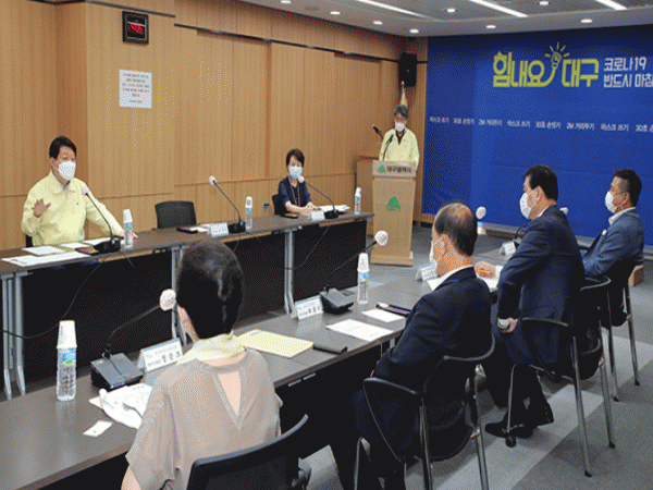 ÀÌ¿Í °ü·Ã ´ë±¸½Ã´Â ¿À´Ã Çѱ¹¿Ü½Ä¾÷Áß¾Óȸ ´ë±¸½ÃÁöȸÀå ¹× À¯ÈïÁÖÁ¡ µî 4°³ À§»ý °ü·Ã ´Üü ´ëÇ¥µé°ú °£´ãȸ¸¦ °¡Áö°í »çȸÀû °Å¸®µÎ±â 2´Ü°è °­È­¹æ¾ÈÀ» Àü´ÞÇϰí Äڷγª19 È®»ê¹æÁö¸¦ À§ÇÑ ÇùÁ¶¸¦ ¿äûÇß´Ù.