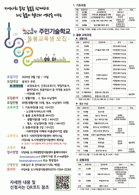 ±âº»±³À°À» À̼öÇÑ ÁÖ¹ÎÀ» ´ë»óÀ¸·Î ³»³â ¿ä¾çº¸È£»ç, Ä¡¸Å¿¹¹æ°ü¸®»ç, Á¤¸®¼ö³³2±Þ µî ÀÚ°ÝÁõ Ãëµæ°ú ¿¬°èÇÑ 2´Ü°è Áֹαâ¼úÇб³ ½ÉÈ­±³À°°úÁ¤ ¼ö°­±âȸ¸¦ Á¦°øÇÑ´Ù.