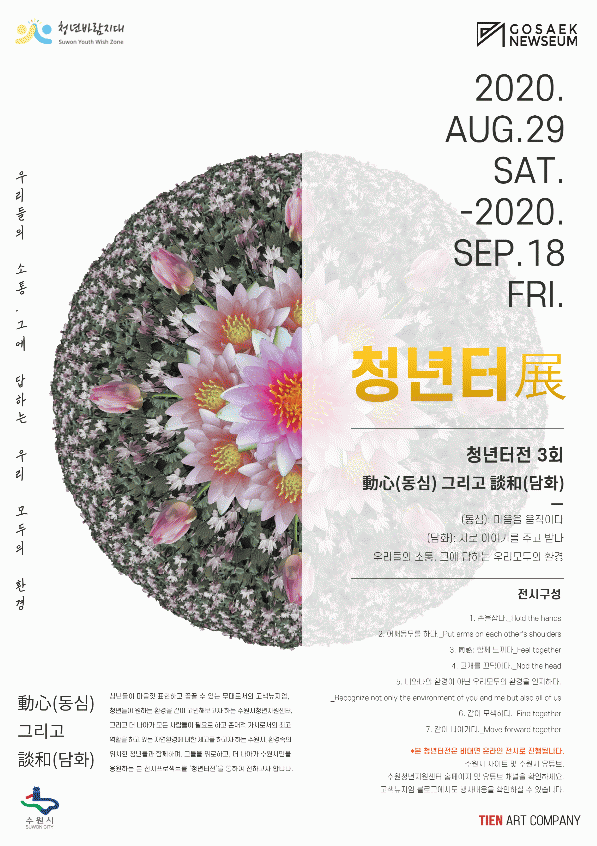 ¡®Ã»³âÅÍÀü(î÷) ¿Â¶óÀÎ Àü½Ãȸ¡¯´Â ¼ö¿ø û³âÀÌ Á÷Á¢ ±âȹ¡¤ÁغñÇÑ Àü½Ã·Î, Äڷγª19 È®»ê ¹æÁö¸¦ À§ÇØ ºñ´ë¸é ¿Â¶óÀÎ ¹æ½ÄÀ¸·Î ÁøÇàµÈ´Ù. ¼ö¿ø½Ãû³âÁö¿ø¼¾ÅÍ(www.swyouth.kr)¡¤¼ö¿ø½Ã ȨÆäÀÌÁö(www.suwon.go.kr), ¼ö¿ø½Ã À¯Æ©ºê ä³Î¿¡¼ Àü½Ã ¿µ»óÀ» º¼ ¼ö ÀÖ´Ù.