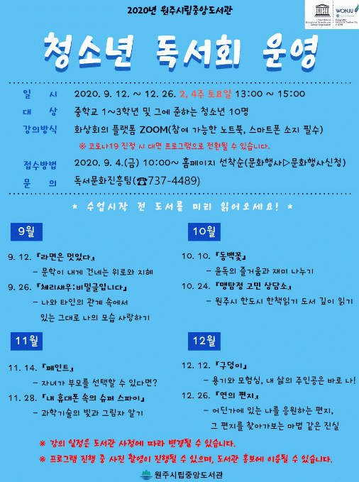 ÁßÇб³ 1~3ÇÐ³â ¹× ±×¿¡ ÁØÇϴ û¼Ò³âÀ» ´ë»óÀ¸·Î 4ÀÏ ¿ÀÀü 10½ÃºÎÅÍ ¿øÁֽø³Áß¾Óµµ¼°ü ȨÆäÀÌÁö¿¡¼ ¼±Âø¼ø Á¢¼öÇÑ´Ù.