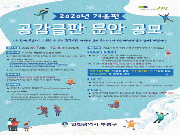 ÇÑÆí, ºÎÆò±¸´Â Áö³ °¡À»Æí °ø°¨±ÛÆÇÀ¸·Î Àֿ̾µ ¾¾ÀÇ ¡®¾Ë¹ãÀÌ ¶³¾îÁ³´Ù / Åö / ³» ¸¶À½ ¼Ó¿¡ ³×°¡ µé¾î¿Ô´Ù¡¯ âÀÛ ¹®¾ÈÀ» ±¸Ã»»ç¿Í ºÎÆò¾î¿ï¸²¼¾ÅÍ µî¿¡ °Ô½ÃÇß´Ù.