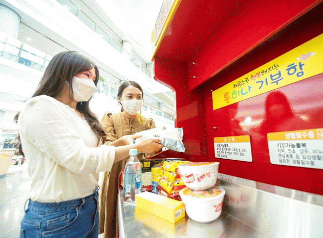 Àå±â°£ º¸°üÀÌ °¡´ÉÇÑ ½Äǰ(ÅëÁ¶¸², ¶ó¸é, ½Ò µî)°ú »ýȰ¿ëǰ(¼¤Çª, ¼¼Á¦, ÈÞÁö, »ý¸®´ë µî)À» ±¸Ã» 2Ãþ, 5Ãþ ·Îºñ¿¡ ¼³Ä¡µÈ ±âºÎÇÔ¿¡ ³ÖÀ¸¸é ¾î·Á¿î ÀÌ¿ôµé¿¡°Ô µû¶æÇÑ ¸íÀý ¼±¹°·Î Àü´ÞÀÌ µÈ´Ù.