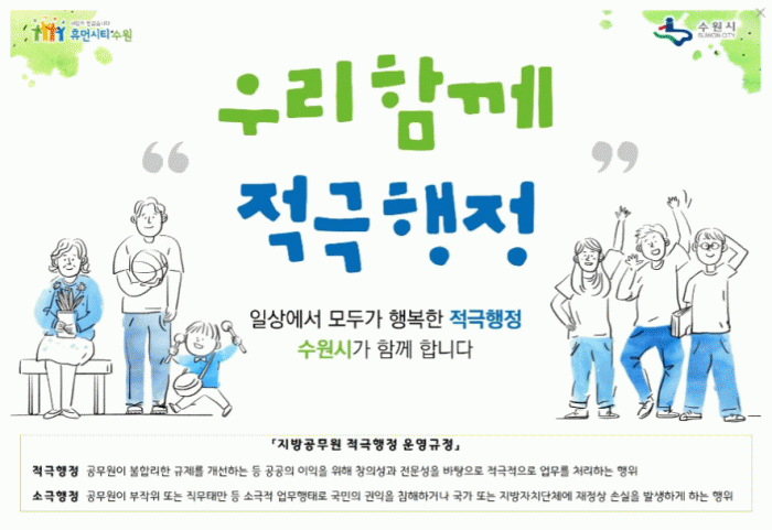 ¼ö¿ø½Ã´Â °øÁ÷»çȸ¿¡ Àû±ØÇàÁ¤À» Á¤Âø½Ã۱â À§ÇØ ²ÙÁØÈ÷ ³ë·ÂÇϰí ÀÖ´Ù. Áö³ 5¿ù 25ÀϺÎÅÍ 7¿ù 8ÀϱîÁö ¸ðµç ºÎ¼¿Í Çù¾÷ ±â°ü Á÷¿øµéÀ» ´ë»óÀ¸·Î ¡®Àû±ØÇàÁ¤ ½Çõ ´ÙÁü ¿îµ¿¡¯À» Àü°³Çß´Ù.