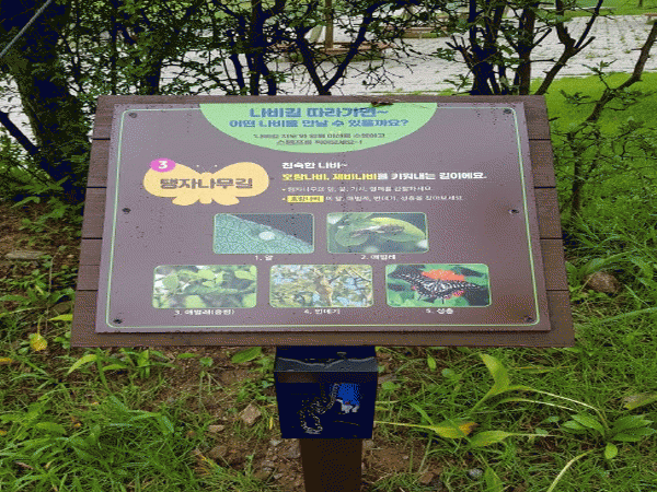 Åõ¾î ÇÁ·Î±×·¥¿¡ µû¸£¸é, »ýŰø¿ø ¾È¿¡ ³ªºñ°¡ Á¾·ùº°·Î ÀÚÁÖ ÃâÇöÇÏ´Â 5°÷À» Á¶ÆË³ª¹«±æ°ú ÆØ³ª¹«±æ, ÅÊÀÚ³ª¹«±æ µîÀ¸·Î ÁöÁ¤ÇÏ°í °¢°¢ÀÇ Àå¼Ò¿¡ ¾È³»ÆÇÀ» ¼³Ä¡Çß´Ù.