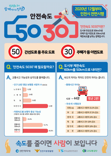 ¡®¾ÈÀü¼Óµµ 5030¡¯Àº ÃÖ±Ù Áö¼ÓÀûÀ¸·Î ¹ß»ýÇÏ´Â º¸ÇàÀÚ »ç¸Á»ç°í¸¦ ¿¹¹æÇϱâ À§ÇØ µµ½ÃÁö¿ª Â÷·®¼Óµµ¸¦ ÇÏÇâ Á¶Á¤ÇÏ´Â Á¤Ã¥À¸·Î °£¼±µµ·Î µî ÁÖ¿ä µµ·Î´Â ½Ã¼Ó 60km¿¡¼ 50km·Î, ÁÖÅð¡ µî À̸鵵·Î´Â 50km¿¡¼ 30km ÀÌÇÏ·Î °¢°¢ Á¶Á¤µÈ´Ù.