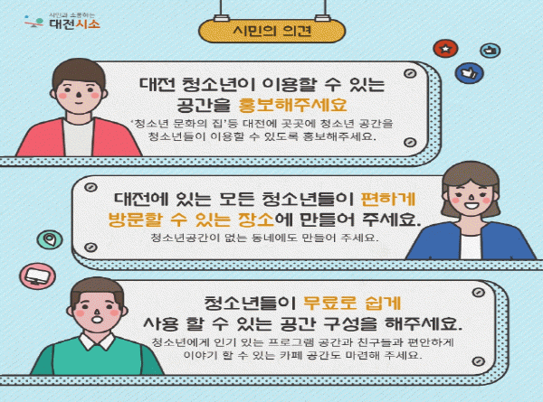 ´ëÀü½Ã´Â Áö³ 6¿ù 8ÀϺÎÅÍ 30Àϰ£ ¡®°¡°í ½Í°í, ¸Ó¹°°í ½ÍÀº û¼Ò³â °ø°£ ¾î¶»°Ô ¸¸µé¸é ÁÁÀ»±î¿ä?¡¯¸¦ ÁÖÁ¦·Î ¿Â¶óÀÎ ½Ã¹ÎÅä·ÐÀ» ¿¾ú´Ù.