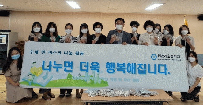 ¼¼°è½Ã¹Î±³À°ÀÇ ÀÏȯÀ¸·Î ³ª´®À» ½ÇõÇϰíÀÚ º»±³ ÀÚÀ²µ¿¾Æ¸® ¶ÑÀ̶ÑÀ̾»§(???? : ±¹Á¦ÈƯ±¸ ¼±Á¤ µ¿¾Æ¸®, Çлý´ëÇ¥ ¹é¼À±, ´ã´ç±³»ç ÀÌÀºÁø) ÇлýµéÀÌ ¸é ¸¶½ºÅ© ¸¸µå´Â ¹æ¹ýÀ» ¿µ»óÀ¸·Î Á¦ÀÛÇϰí 3Çгâ Çлýµé°ú ±³»çµéÀÌ ÀÌ ¿µ»óÀ» º¸¸é¼ ¼Õ¼ö ¸¶½ºÅ©¸¦ ¸¸µé¾ú´Ù.