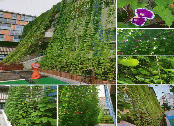 ¿¡ÄÚ³ìÈ(±×¸°Ä¿Æ°)Àº ¸¶Àüµ¿ 987-7¹øÁö °Ë´ÜÃâÀå¼Ò ³» °Ç¹° ¿Üº®¿¡ ·ÎÇÁ¸¦ ¼³Ä¡Çϰí dz¼±ÃÊ¿Í ³ªÆÈ²É µÎ Á¾·ùÀÇ µ¢±¼½Ä¹°À» ½É¾î ³ëÈÄµÈ °Ç¹° ¿Üº®À» ³ìÈÇßÀ¸¸ç, À̸¦ ÅëÇØ ¿©¸§Ã¶ ÅÂ¾ç¿ Â÷´ÜÀ¸·Î ÀÏ¹Ý °Ç¹°º¸´Ù ½Ç³»¿Âµµ¸¦ ³·Ãß¾î ¿¡³ÊÁö¸¦ Àý¾àÇÒ ¼ö ÀÖ´Ù.