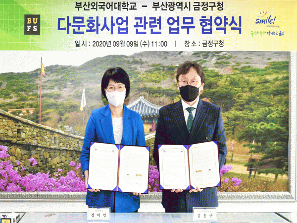 Á¤¹Ì¿µ ±ÝÁ¤±¸Ã»Àå°ú ±èÈ«±¸ ºÎ»ê¿Ü±¹¾î´ëÇб³ ÃÑÀåÀ» ºñ·ÔÇÑ °ü°èÀÚ 8¸íÀÌ Âü¼®ÇÑ °¡¿îµ¥ ¿¸° À̳¯ Çù¾à½Ä¿¡¼, ±ÝÁ¤±¸¿Í ºÎ»ê¿Ü´ë´Â ¾ÕÀ¸·Î Áö¿ªÁֹΰú ´Ù¹®È°¡Á·ÀÌ »óÈ£±³·ùÇÏ¸ç ´Ù¹®È°¡Á·¿¡ ´ëÇÑ ÀνÄÀ» Á¦°íÇϱâ À§ÇÑ Çù·Â ü°è¸¦ ±¸ÃàÇϱâ·Î ¶æÀ» ¸ð¾Ò´Ù.